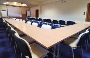 *do ceny sal należy doliczyć 23% podatek VAT. Wyposażenie sal konferencyjnych: – zestaw multimedialny (projektor + laptop): 200 zł/dzień + 23% VAT. W cenie sali oferujemy: rzutnik pisma, rzutnik slajdów, tablicę flipchart, TV, video, ekran, dostęp do Internetu. Wszystkie sale mają charakter wielofunkcyjny.